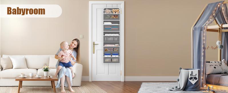 Over-The-Door Organizer – Reclaim Your Space!Hang effortlessly over standard doors (no drilling/tools) to maximize vertical space, ideal for bedrooms, bathrooms, closets, and dorms. Features 5 tiers + 10 large pockets, 44 lb robust capacity, and anti-tilt design for stability. Versatile for shoes, toiletries, baby products, and office items – keep essentials neat, accessible, and clutter-free! #OverTheDoorOrganizer #SpaceSavingStorage #44LbCapacity