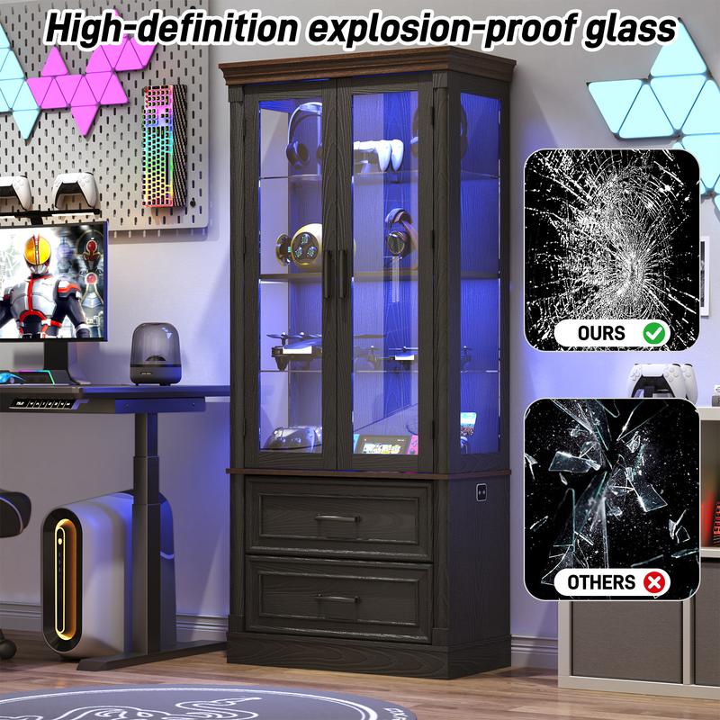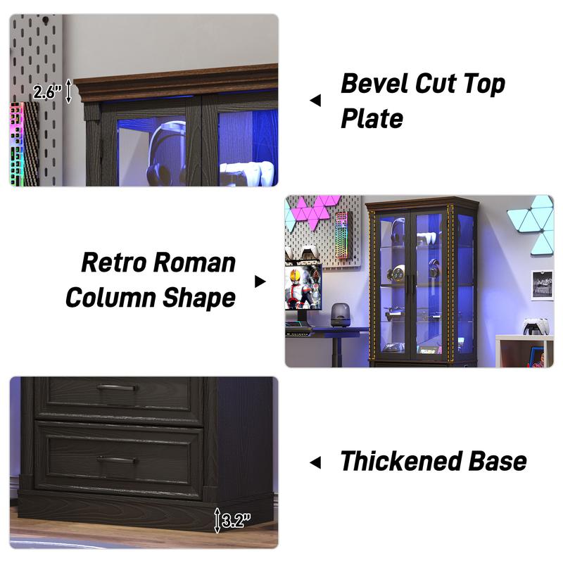 - Solid and Premium:Built from high quality MDF board and high-definition explosion-proof glass, this modern glass display storage cabinet offers reliable stability and outstanding durability. We also provide thick wood cabinet legs and anti-tipping device to prevent many problems.