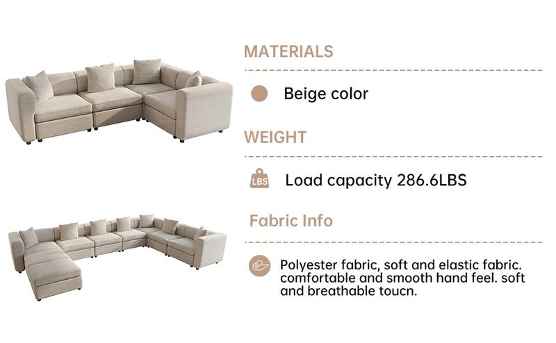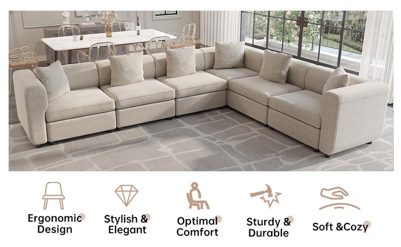 This sectional sofa boasts a modern design, ideal for any living room, apartment, or home. It comes with 4-7 pillows, enhancing both comfort and style. The sofa's contemporary look ensures it complements various interior styles, making it a versatile choice for your living space.