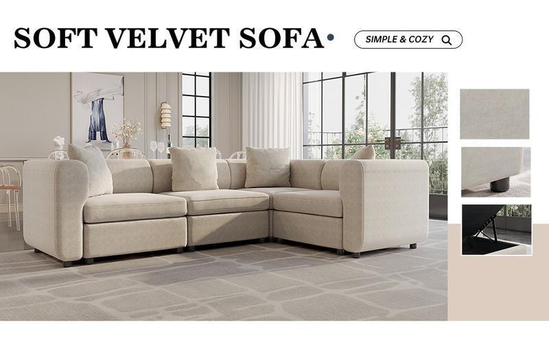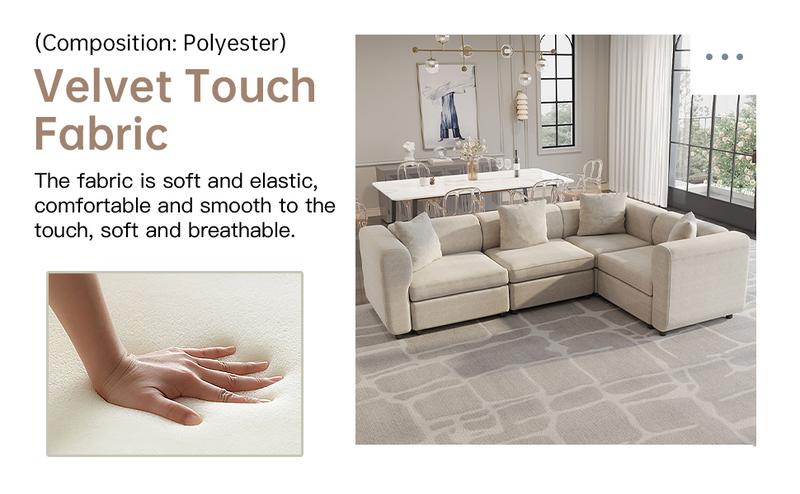 Guyii Modern L-Shaped Velvet Sectional Sofa - 4/5/6/7/8/9 Piece Oversized Seater with 4-7 Pillows, Convertible with Cushions, Stylish Modular Couch for Living Room & Apartment