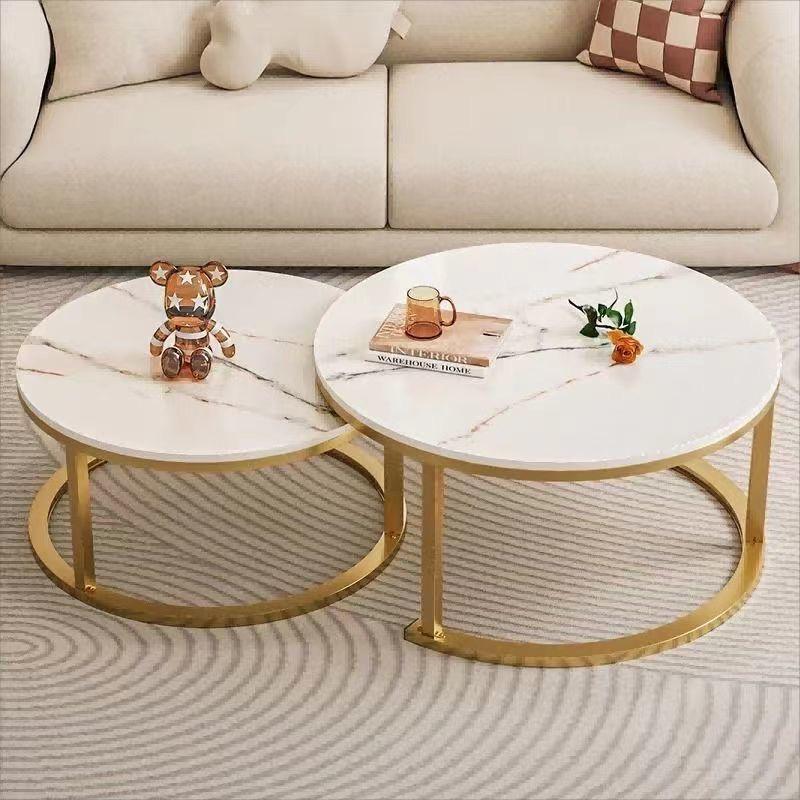 ✨ Space-Saving Design ✨ This set includes a large and a small round coffee table. The small table can be placed under the larger one, saving space. You can customize the arrangement as you prefer. 📐