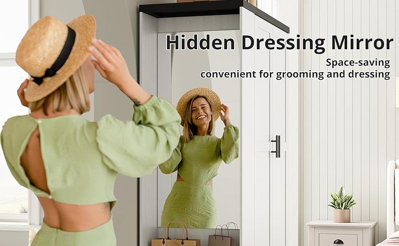 - Dressing Mirror: Our wardrobe closet features a side-hidden large mirror, designed to save space, enhances aesthetics, blends seamlessly with decor,and ensuring you look your best with easy last-minute adjustments. Plus, 2 side shelves provide extra storage for shoes, bags, and more