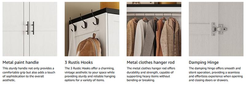 - Robust and Long-lasting: Made from premium engineered wood, this bedroom wardrobe closet is durable and reliable. It also includes an anti-tip device for safety and cushioned hinges on the cabinet doors to minimize noise and ensure sustained use