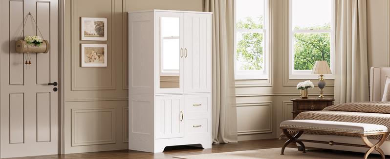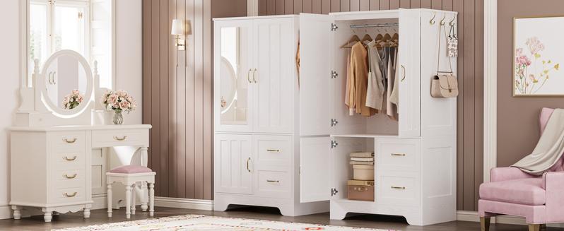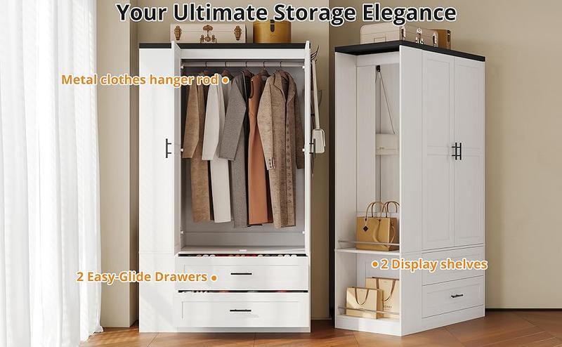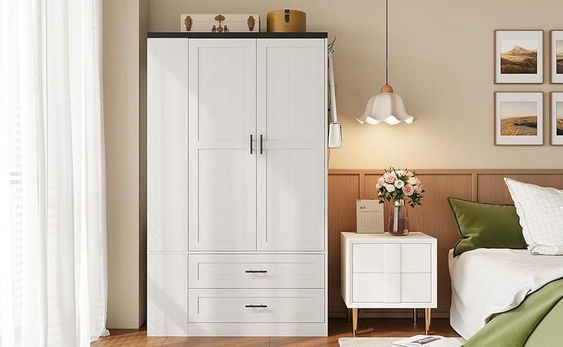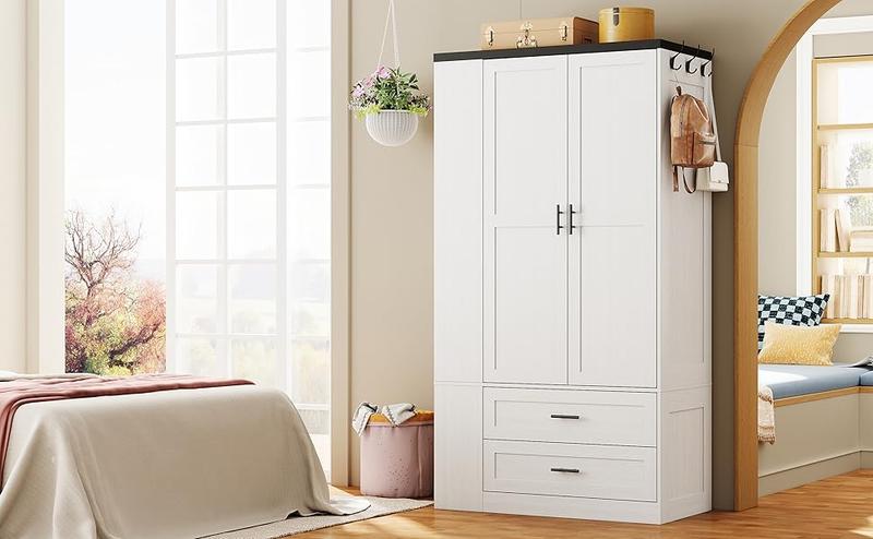 - Modern Fashion: Our white clothes cabinet with doors and drawers, a refined yet straightforward wood wardrobe cabinet, effortlessly melds with your decor. The wooden closet expands bedroom storage while elevating aesthetics, perfectly with many different house decor